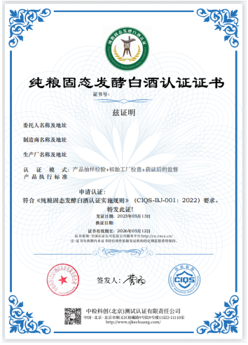 纯粮固态发酵白酒证书+认证平台,为高品质白酒护航